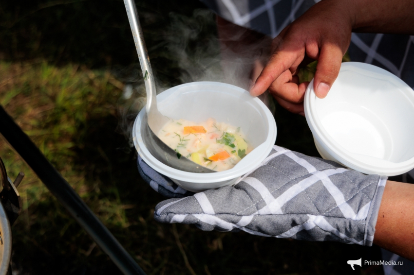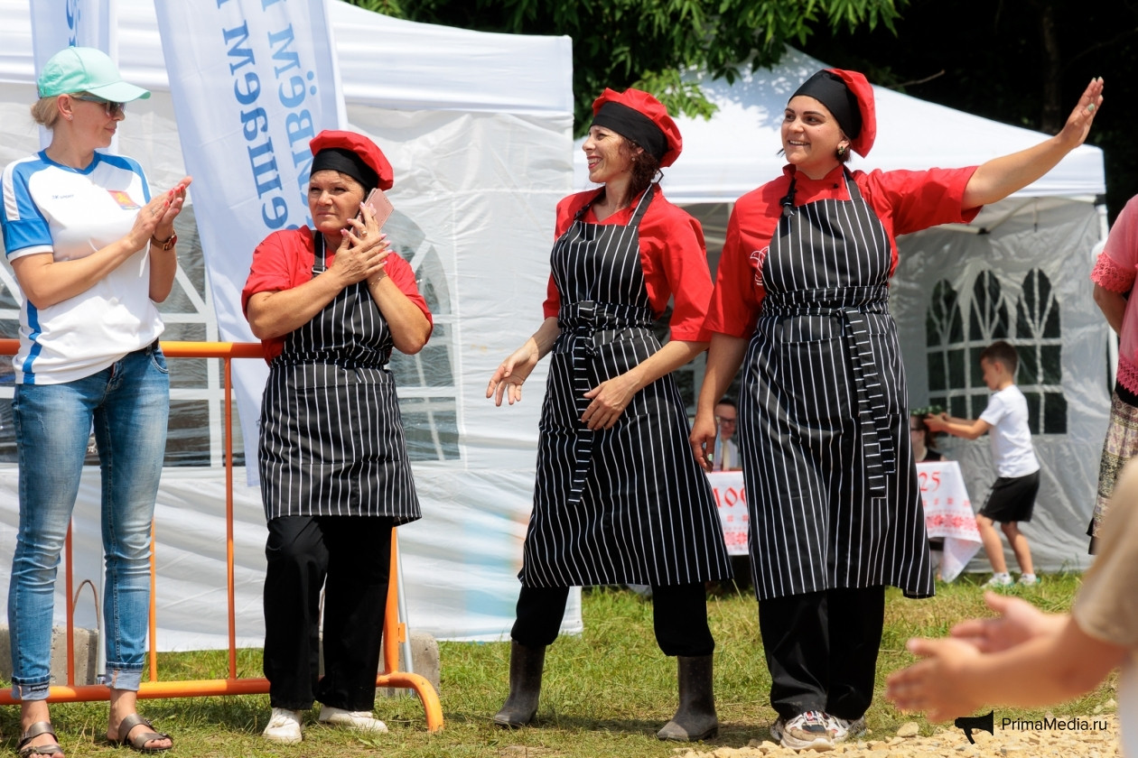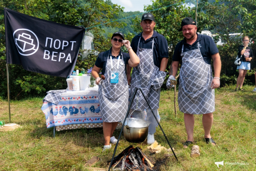 Надо отметить, что фестиваль был насыщен на события. На сцене с концертными номера выступали творческие коллективы Шкотовского муниципального района. В районе 14.00 состоялось награждение победителей утренних заплывов в рамках “Русской версты”. Почти в одно время с этим дали старт конкурсу “Эх, ушица!” на приготовление ухи, в котором приняли участие пять команд. Для их кулинарной “битвы” отвели специальную зону, где были организованы столы и костровища с необходимым инвентарем. Ингредиенты каждая команда привезла с собой.