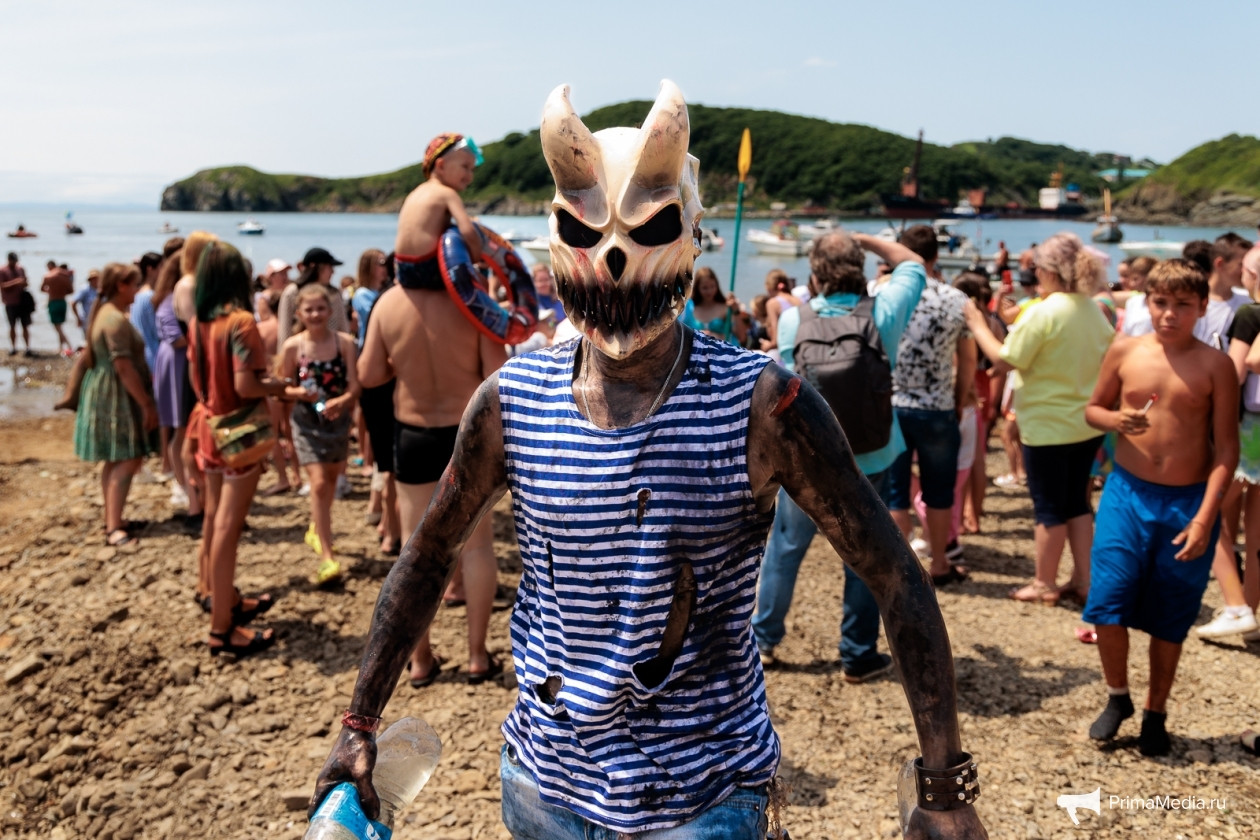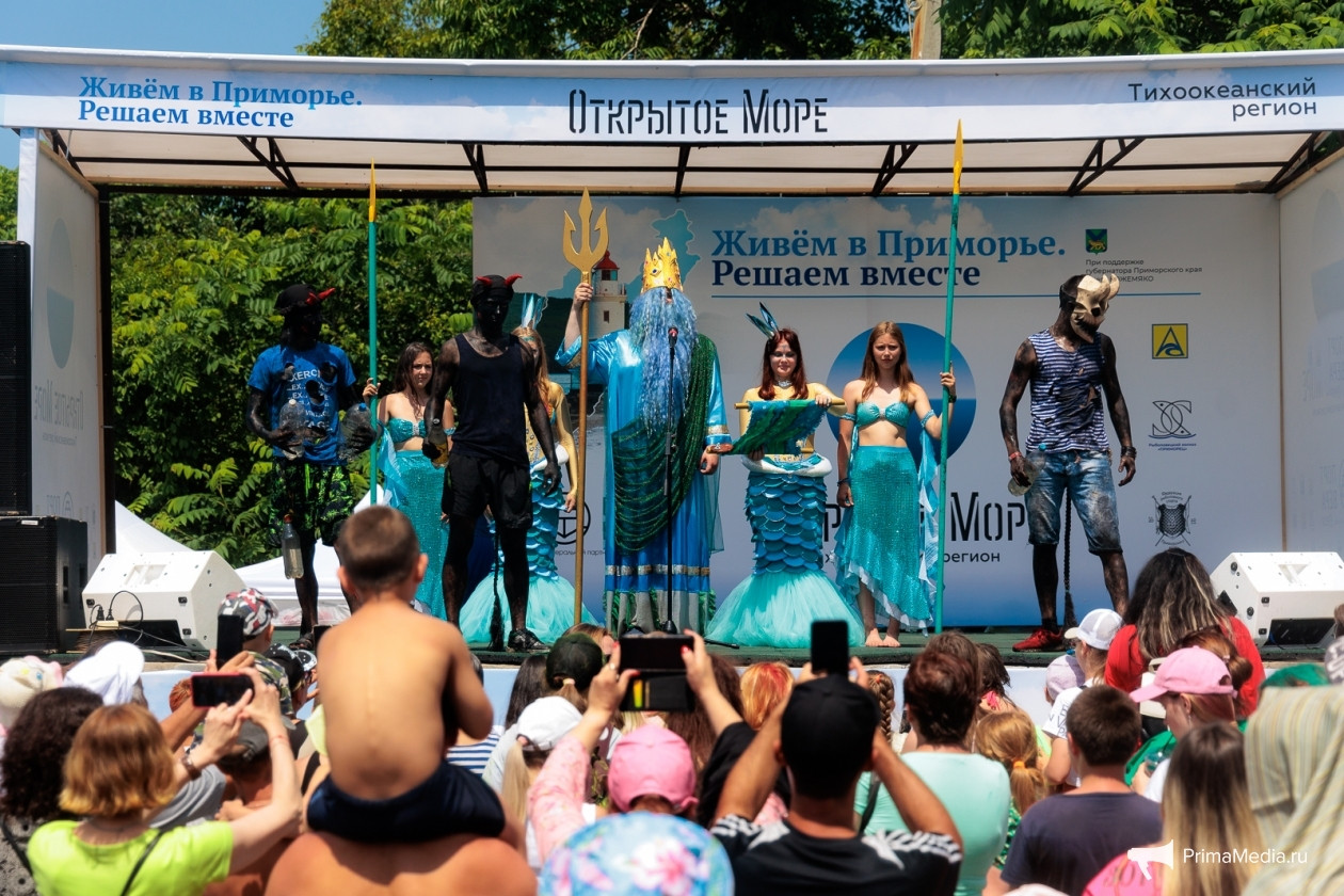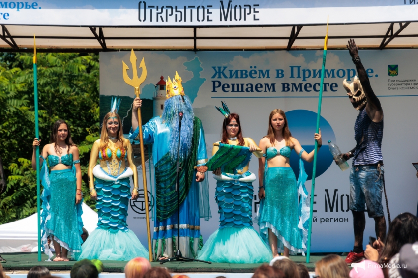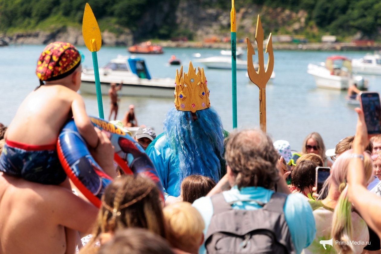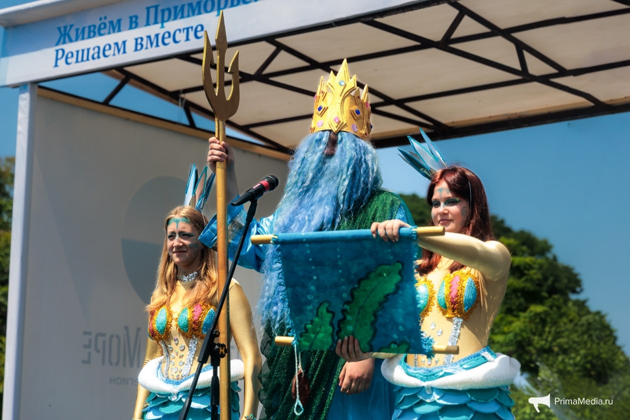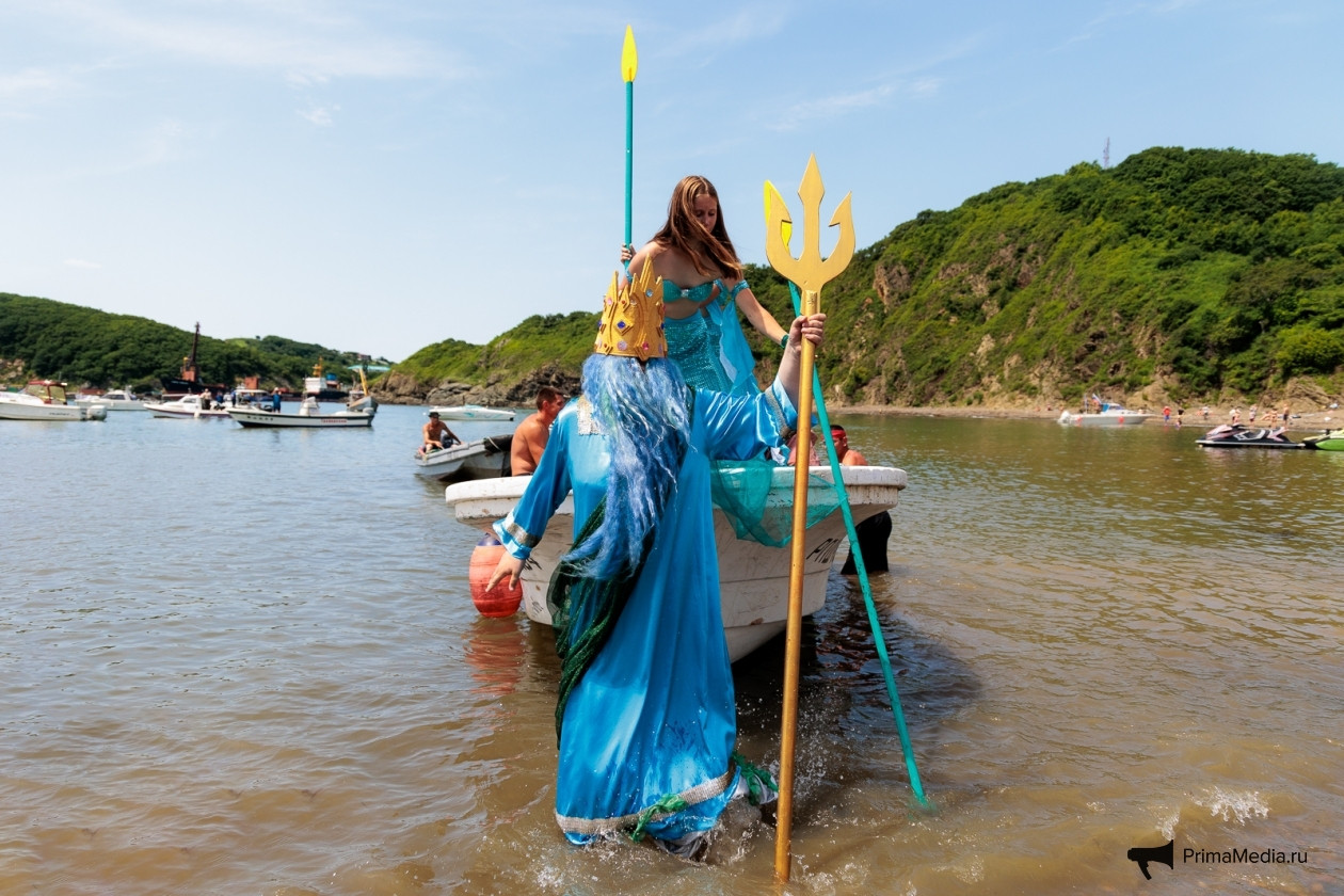 Кульминацией масштабного праздника стал выход из моря Нептуна. Герой мифов и сказок явился на катере к берегу и вместе со своей свитой, в которой были, к слову, и черти, проследовал на главную сцену. Радости среди детей и взрослых не было предела — черти от души поливали всех водой. А Нептун, как главный герой Дня рыбака поздравил со сцены всех гостей фестиваля, а также взял с них клятву — беречь море от мусора и обязательно соблюдать меры предосторожности при купании.