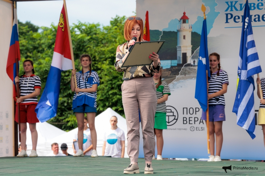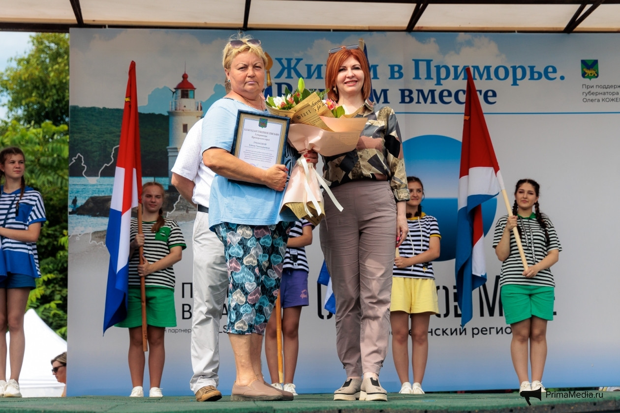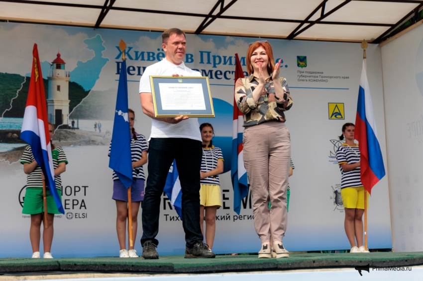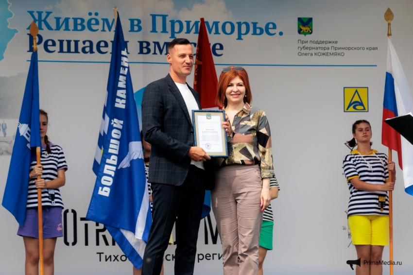 В 16.00 стартовала официальная часть, предвещавшая раскрытие главной интриги дня — награждение победителей “Открытого моря”. Поздравить гостей праздника с Днем рыбака от лица губернатора Олега Кожемяко и себя лично приехала заместитель председателя правительства Приморского края — министр культуры и архивного дела Приморья Елена Бронникова. Также в честь открытия “Выставки достижений народного хозяйства” (0+) она вручила приветственный адрес от губернатора Олега Кожемяко главе Шкотовского муниципального района Владимиру Носову.