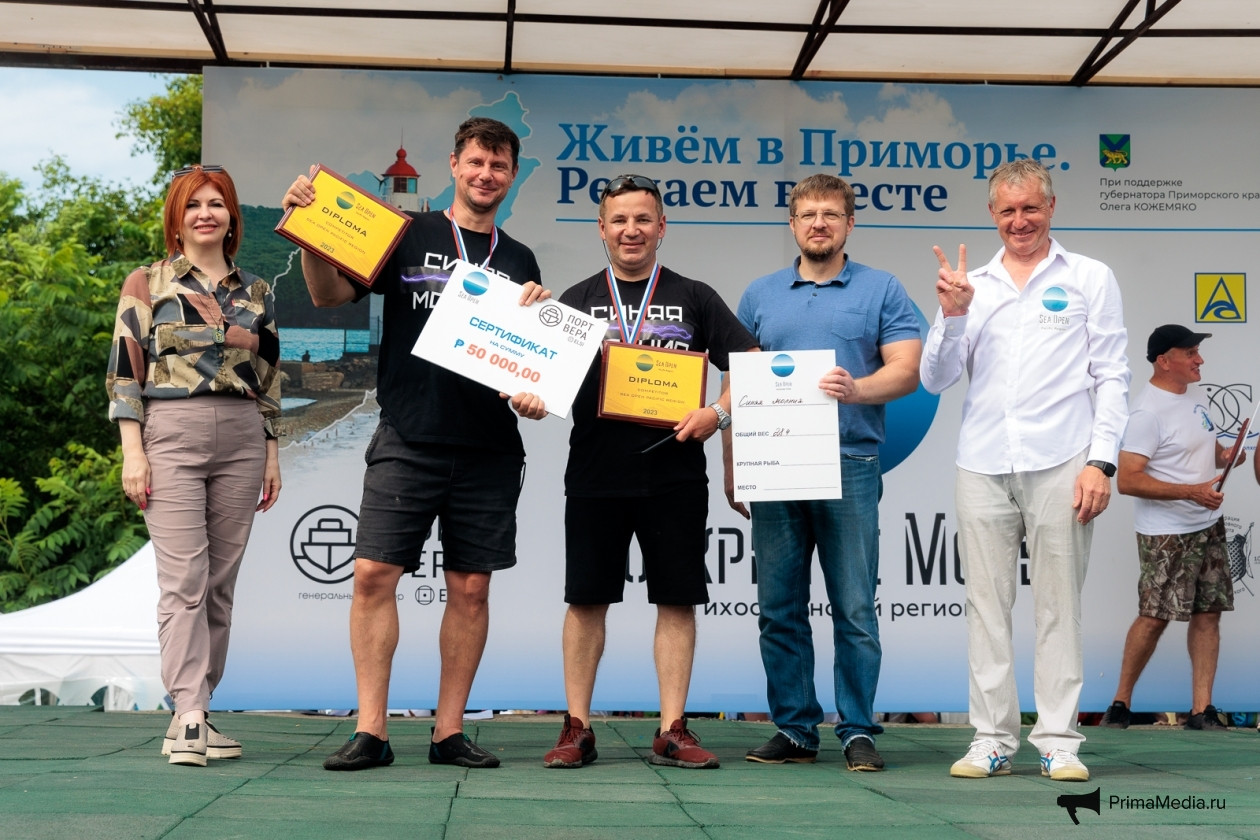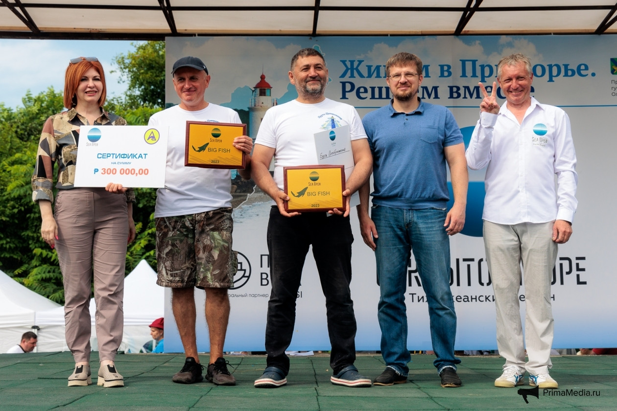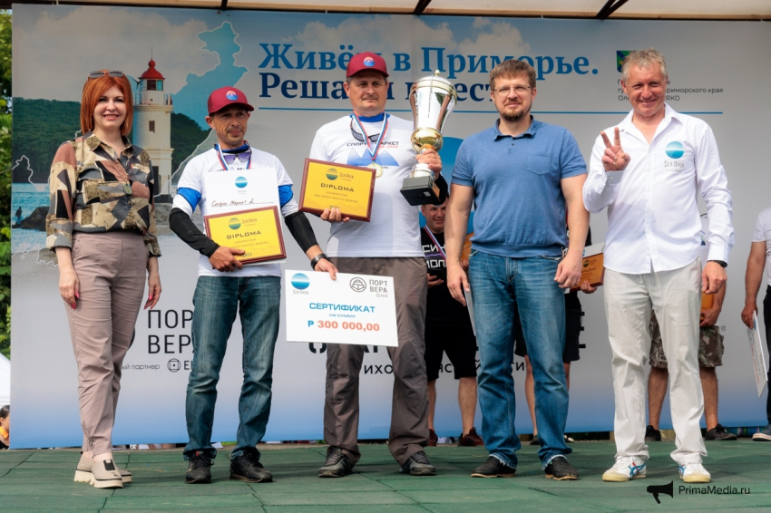 После вручения благодарственных писем губернатора региона стартовало долгожданное оглашение победителей соревнований по спортивной рыбалке. Генеральный спонсор фестиваля — морской терминал “Порт “Вера” подготовил для победителей внушительные призы в виде сертификатов на 50 тысяч, 100 тысяч и 300 тысяч рублей. А также специальный приз в 300 тысяч рублей в номинации “Самая большая рыба”.