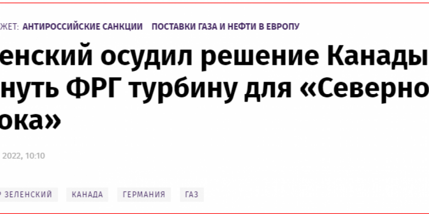С турбиной всё в порядке, готова к установке и запуску, но Канада возвращать отказалась, так как санкции не позволяют. Ну никакого единства в решениях «коллективного Запада», не получается действовать коллективно, чтобы не мешать друг другу.