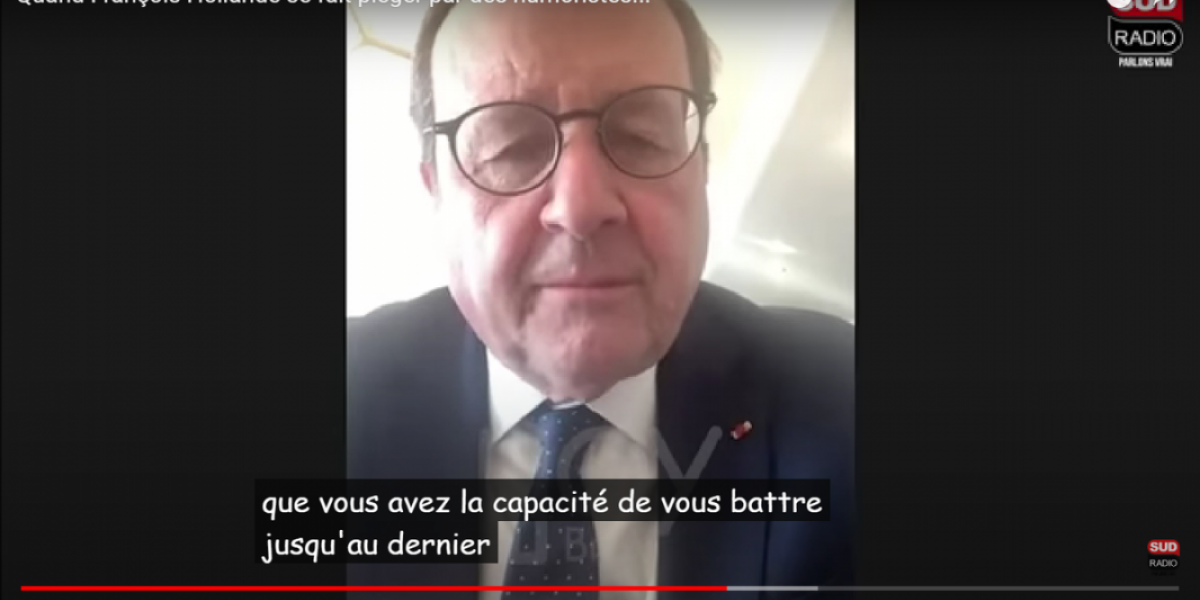 А чтобы Макрону жизнь в Китае медом не казалась, старый лис Андре Беркофф приурочил к началу визита выход на SudRadio своей передачи «Франсуа Оланд попал в ловушку русских юмористов»,с телефонным разговором бывшего президента Франции со Лжепорошенко. Роль последнего с блеском исполнили Вован и Лексус.