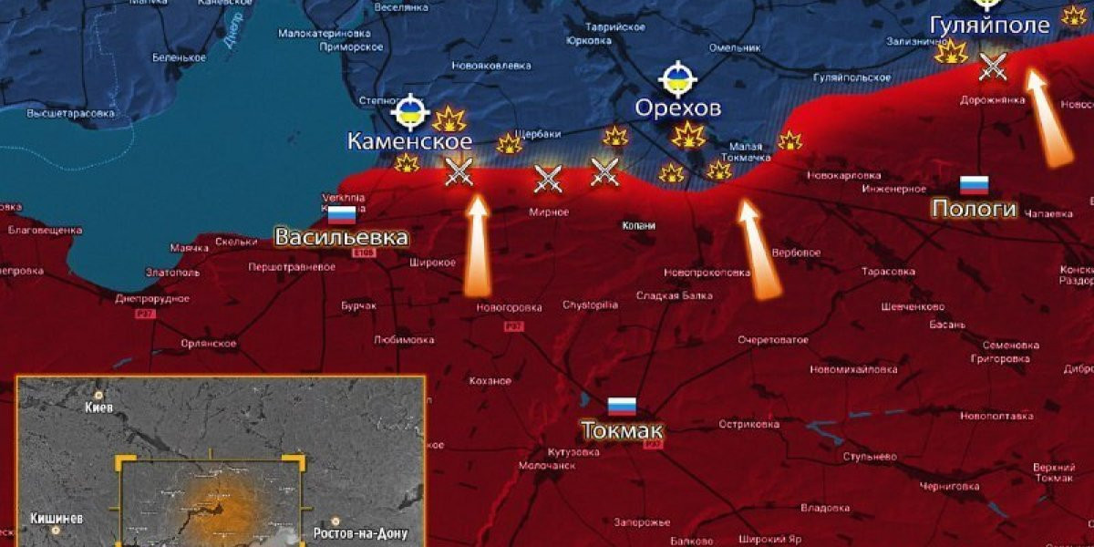 ▪️На Запорожском направлении российские подразделения нанесли огневое поражение ВСУ в районах более 15 н.п., в частности, Малиновка ДНР и Ольговское, Гуляйполе, Белогорье, Орехов, Малая Токмачка, Новоданиловка, Новоандреевка, Малые Щербаки и Каменское Запорожской области», — говорится в вечерней сводке Генштаба ВСУ.