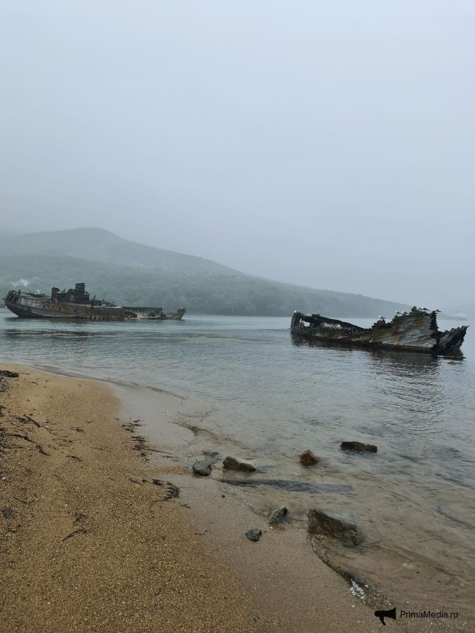 Берег в бухте Витязь на том же полуострове Гамова славится загадочным кладбищем затонувших кораблей. Рыбацкая шхуна “Лысьва”, 60-ти метровый “Лахтак”, судно “Кварц”, пароход “Владимир” превратились в приют для местных морских обитателей, а также в музей для ныряльщиков с масками. И действительно, мрачные проржавевшие судна, окружённые туманом, так и манят любителей истории и авантюр.