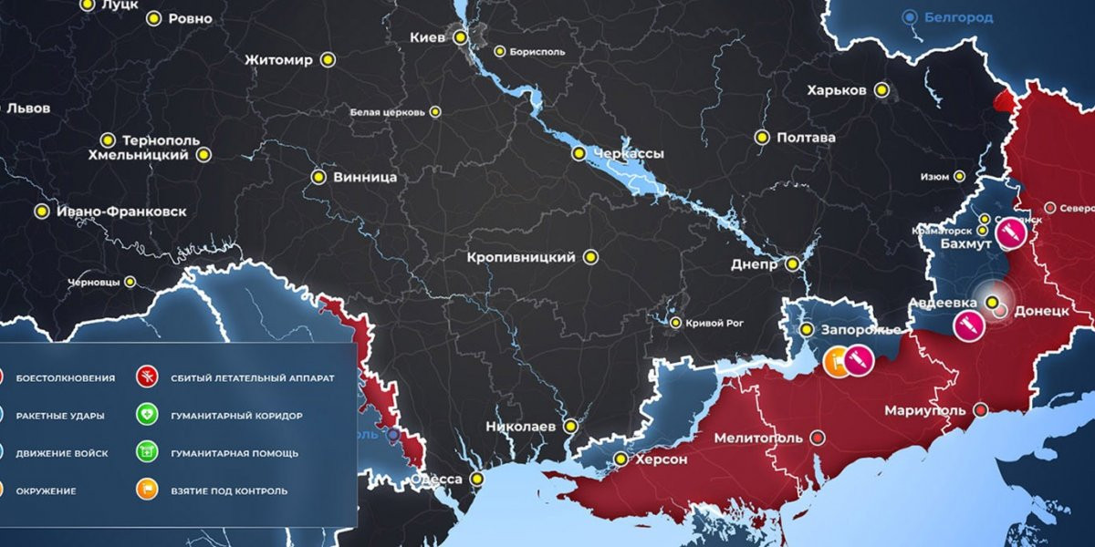 - Карта боевых действий на Украине, 14 июля 2023г., от РИА Новости. Карта специальной военной операции.