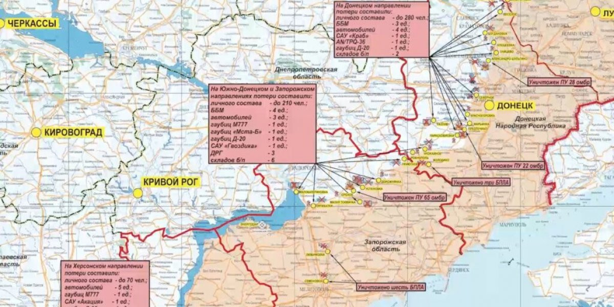 “В РЕЗУЛЬТАТЕ ОГНЕВОГО ПОРАЖЕНИЯ СОЕДИНЕНИЯМИ ГРУППИРОВКИ ВОЙСК “ДНЕПР” НА ХЕРСОНСКОМ НАПРАВЛЕНИИ УНИЧТОЖЕНЫ: ДВА 120-МИЛЛИМЕТРОВЫХ МИНОМЕТНЫХ РАСЧЕТА И БОЕКОМПЛЕКТЫ К НИМ В РАЙОНЕ АНТОНОВКИ, ГАУБИЦА М777 В РАЙОНЕ НАСЕЛЕННОГО ПУНКТА МОЛОДЕЖНОЕ, БОЕКОМПЛЕКТ К НЕЙ И РАСЧЁТ ИЗ 5 БОЕВИКОВ ВООРУЖЕННЫХ ФОРМИРОВАНИЙ УКРАИНЫ”, – СКАЗАЛ СОБЕСЕДНИК АГЕНТСТВА.