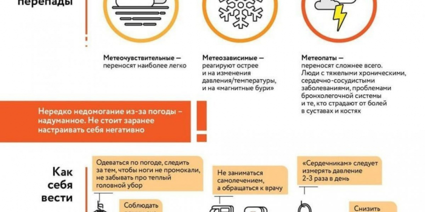 Кроме того, врач отметила, что метеозависимость становится триггером различных хронических заболеваний. Таких как: повышение артериального давления, заболевания со стороны нервной системы, бронхиальная астма и различные психиатрические состояния. Ратникова отметила, что при обострении тех или иных заболеваний стоит пройти диспансеризацию.