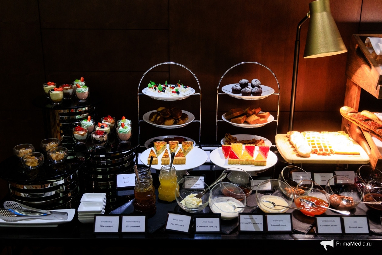 Ценителям вкусной европейской кухни предлагают заглянуть в лобби-бар “Рандеву”, где ежедневно проходит завтрак в формате шведского стола. Тем более, что в начале июля обновился и расширился ассортимент свежей и ароматной выпечки от собственных кондитеров, чьи десерты можно попробовать не только на завтраке, но и в любое время суток. Они представлены на витрине. В “Уголке Кореи” можно найти корейские блюда, приготовленные по традиционным рецептам. Обязательная часть завтрака — морепродукты. В июле лобби-бар “Рандеву” присоединился к Фестивалю дальневосточного гребешка, а потому в меню можно найти позиции из этого нежного морского деликатеса.