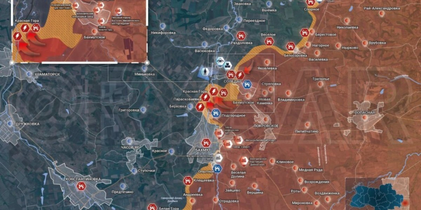 В Бахмуте ВСУ пытаются сдержать наступление российских войск. Сводные отряды 57 омпбр и 61 омбр вперемешку с теробороной, 32 полком нацгвардии и группой ССО «Карпаты» укрепляют позиции в центральной части города.