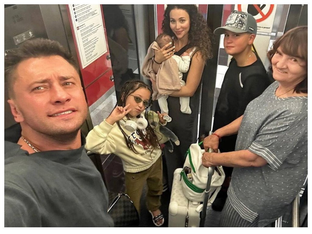 В Сети появилась новая фотография семьи, которая была сделана перед самым началом путешествия. Видимо, супруги взяли с собой в поездку Любовь Юрьевну (мать актера), которая будет во время каникул помогать паре с уходом за малышом. Кроме того, на отдых отправились дети Прилучного от первого брака -10-летний Тимофей и 7-летняя Мия.