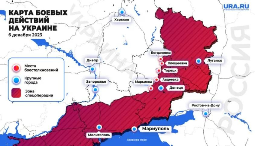 Свежая карта боевых действий на Украине по данным на 06.12.2023