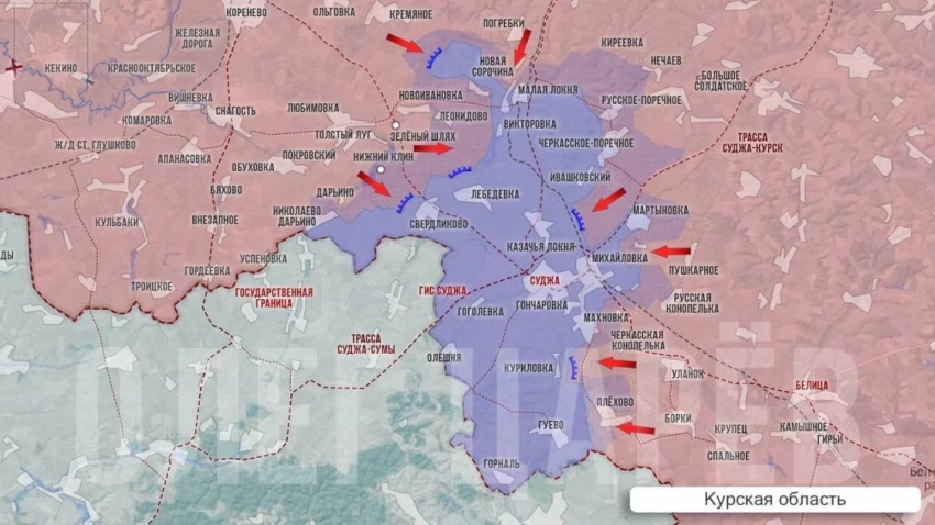 В свою очередь Telegram-канал PulsePen пишет о том, что на юго-восточном участке подразделения ВС РФ продвинулись южнее Плёхово и зачистили территорию до реки Псёл. Также сообщается о боях в самом Плёхово. Ряд источников сообщает, что населённый пункт был освобождён Армией России, другие же утверждают, что бои всё ещё продолжаются и не нужно торопить события. Ждём сегодня хороших новостей с подтверждением.