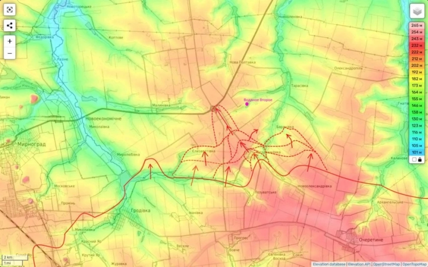 В свою очередь на Мирноградском направлении Барановска, Малиновская развязка и Водяное Второе являются теми тремя населенными пунктами пунктами, на которые давят российские войска.