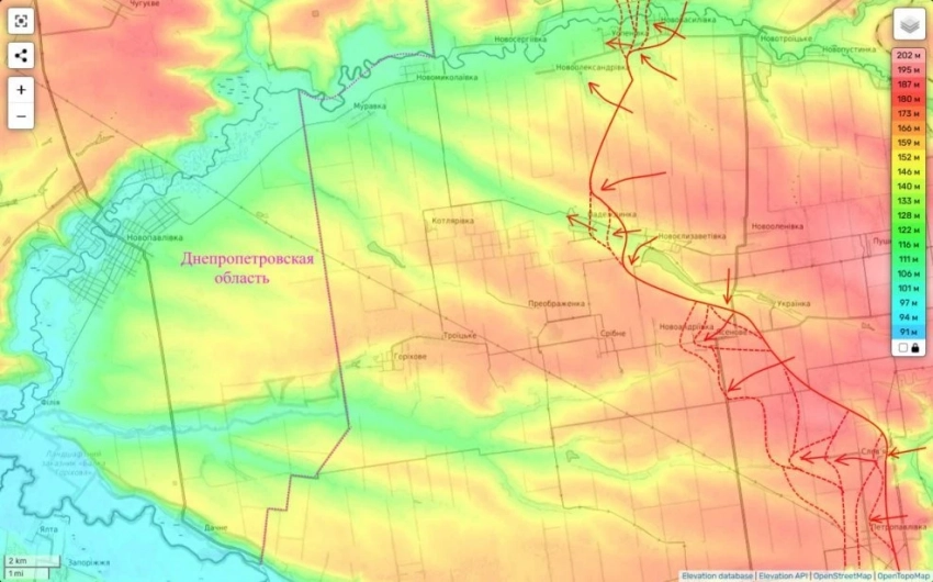 А еще продолжаются наши атаки по холмам западнее Славянки (на Андреевку). Фактически по всему этому фронту атакуем.