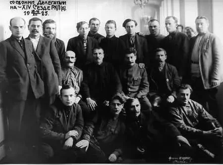 Иосиф Сталин (в центре) и Никита Хрущёв (внизу слева) с делегатами XIV съезда Российской Коммунистической партии (большевиков). Тот, кто приблизил к власти полную посредственность, и тот, кто низверг приблизившего человека с пьедестала. Отблагодарил, называется? Или это просто усталость от работы под началом человека, интеллекту которого не мог не завидовать? Кто знает…