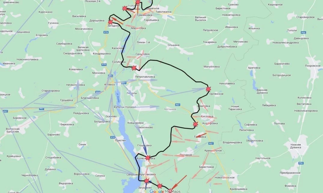 На Купянском направлении ВС РФ продвигаются на юго-востоке от Зелёного Гая. Также наращиваются усилия в районе Двуречной и Западного.
