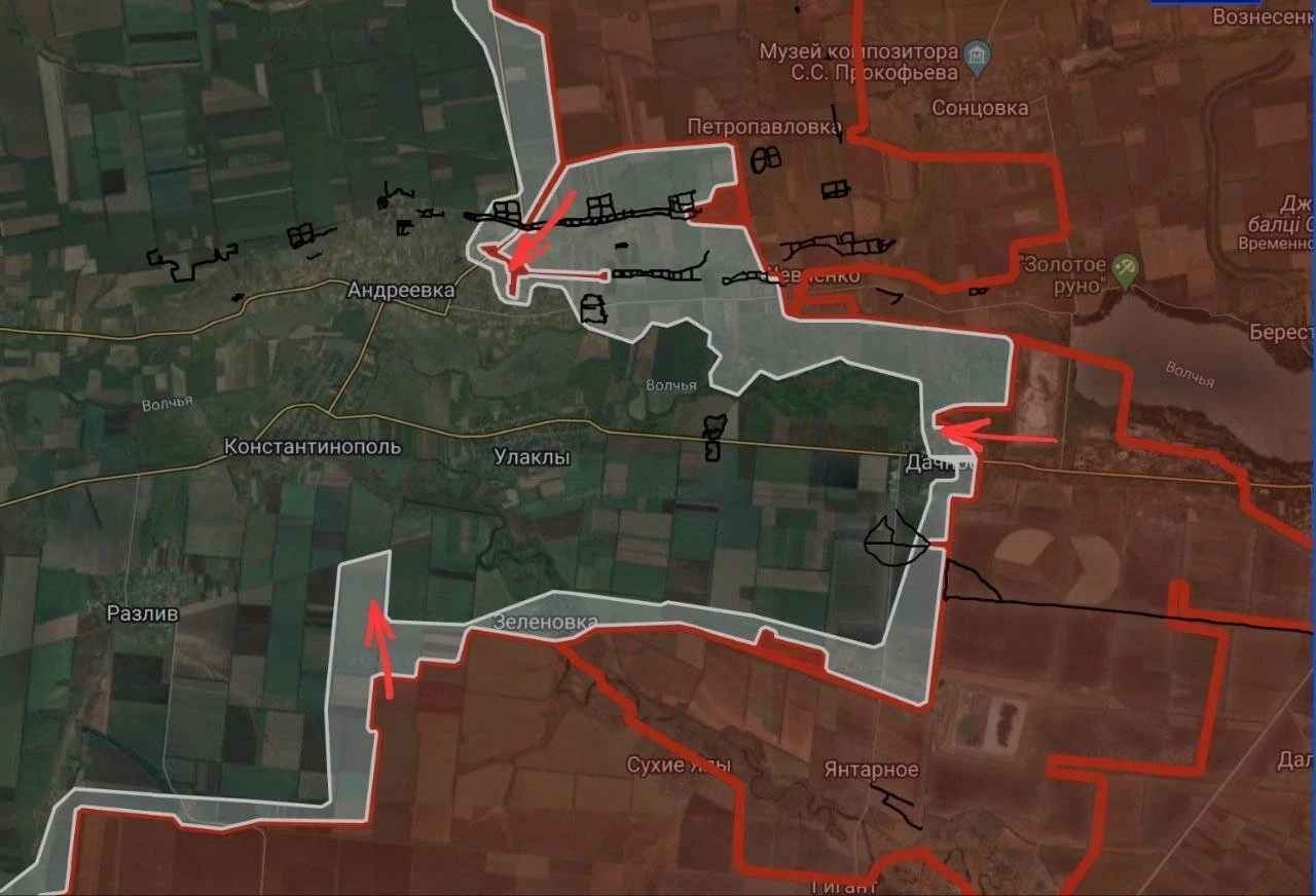 На Константинопольском направлении ВС РФ имеют тактические успехи в Андреевке. Продолжаются встречные бои в Дачном и на подступах к Константинополю, сообщает Telegram-канал "БелВПО".