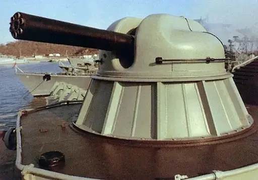 Артиллерийская часть и аппаратура наведения находились во внутреннем объёме полностью закрытой башни, выполненной из лёгкого сплава, что снизило зависимость от неблагоприятных морских факторов и улучшило надёжность.