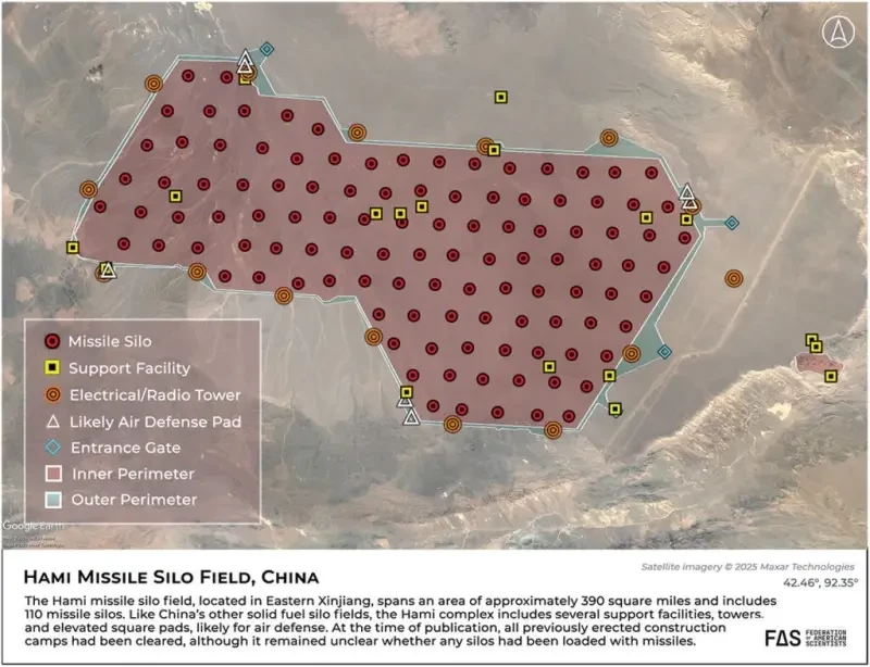 Китай продолжает долгосрочную модернизацию своих наземных ракетных сил, способных нести ядерное оружие. Но темпы и масштабы этих усилий значительно возросли за последние несколько лет, поскольку ведется строительство примерно 350 новых ракетных шахт и нескольких новых баз для мобильных ракетных пусковых установок.