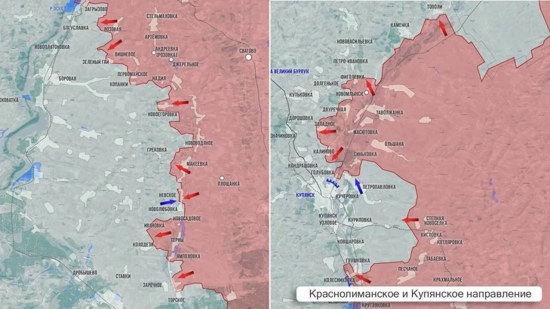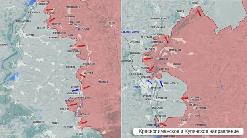 На Краснолиманском участке бои вблизи Нового и Катериновки. Если этот плацдарм объединится с тем, что в районе Макеевки, образуется довольно крупный оперативно-тактический плацдарм на западном берегу Жеребца. Западные аналитики сообщают, что ВС РФ сосредоточили на этом участке силы, в 10 раз превышающие потенциал ВСУ. Основными целями удара они называют Лиман и Боровую.