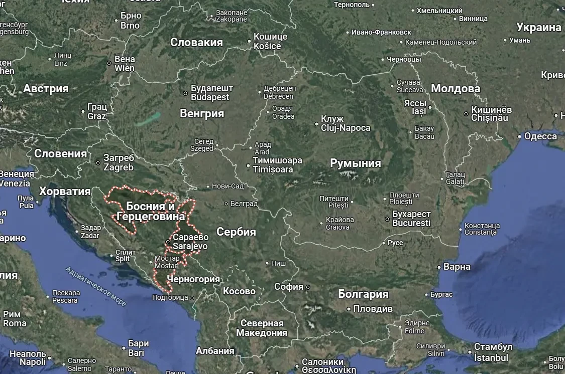 Контуры Республики Сербской в составе Боснии и Герцеговины