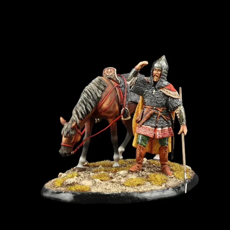 Русский конный воин из дружины князя Дмитрия Донского. Доспехи из кованых пластин, и такие же наплечники – всё это стало неотъемлемой частью защитного вооружения русских воинов, сражавшихся на Куликовом поле. Производители: «Silver Dream Studio» и «Mercury Models»