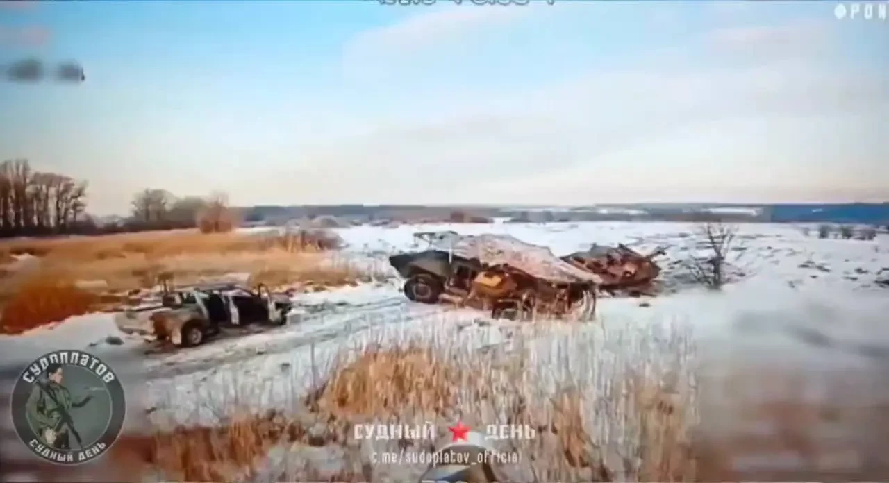 Два подбитых M1117 и другая техника, февраль 2025 г., Харьковская область. Фото Telegram / «Судоплатов»