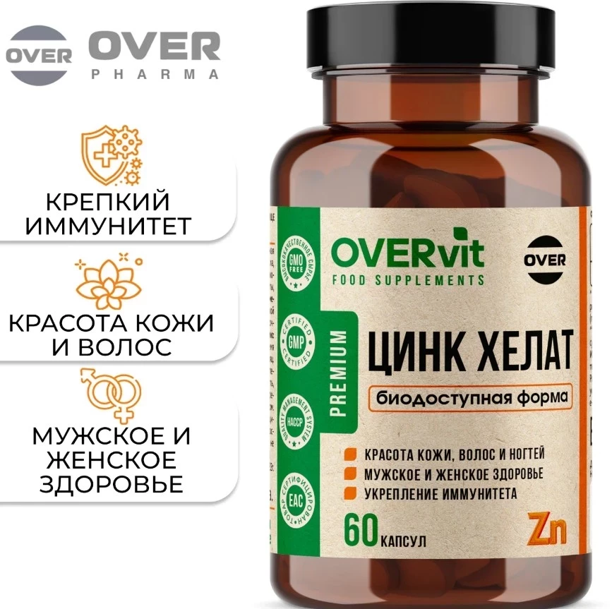 Цинк хелат от OVERvit — это высокоэффективная добавка, созданная для восполнения дефицита цинка в организме. Благодаря хелатной форме, цинк легко усваивается, не вызывая побочных эффектов со стороны ЖКТ. Цинк играет ключевую роль в поддержке иммунной системы, здоровья кожи, а также способствует улучшению состояния волос и ногтей. Он предотвращает выпадение волос и стимулирует их рост. Этот продукт — отличный представитель рейтинга бадов для волос, способствующий не только внешнему, но и внутреннему здоровью.