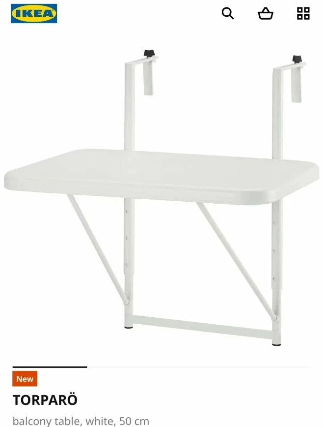 Балконный подвесной столик IKEA TORPARÖ, белый, 50 см, металл