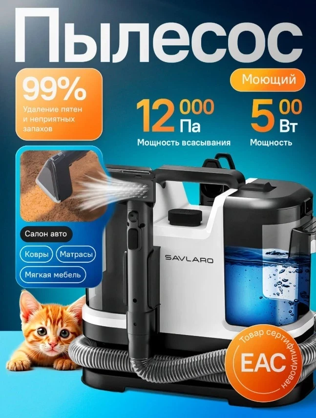 SAVLARO — мощный ручной пылесос с функцией влажной уборки и химчистки, способный глубоко очищать мягкую мебель, ковры и автомобильные салоны. Он сочетает в себе профессиональную эффективность и бытовую практичность, справляясь даже со стойкими пятнами и неприятными запахами. Технология двойного бака, функция самоочистки и комплект сменных насадок превращают уборку в удобный и результативный процесс. Если вы ищете, как выбрать ручной пылесос для мебели — эта модель определённо заслуживает внимания.