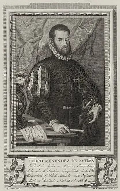 В июле 1565 года эскадра Менендеса вышла из Кадиса, на бортах 10 кораблей находились 995 солдат, 117 поселенцев (labradores) и то ли 10, то ли 12 монахов-миссионеров. Эскадра значительно усилилась на Канарских островах, численность кораблей теперь достигла 26, солдат на них было около 2600. Французская колония Флориды была разорена, убиты около 200 человек, пощадили только католиков и... музыкантов. Меньендес стал первым испанским губернатором Флориды и основал ныне существующий город Сан-Аугустин (Сент-Огастин). Был назначен также и губернатором Кубы, которой управлял через своего заместителя.