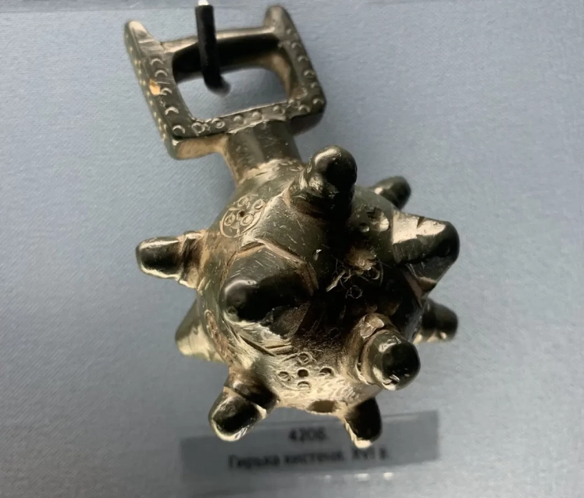 Колесцовый пистолет немецкой работы с инкрустацией из слоновой кости. Случается, что экскурсоводы говорят, что яблоко на рукоятке служило для того, чтобы бить врага по голове, и да, в горячке боя бывало и такое, но только в реальности это был всего лишь… пенал для принадлежностей, тех же, скажем, запасных кремней! Потому-то, кстати, его «яблоко» так старательно и украшено инкрустацией.