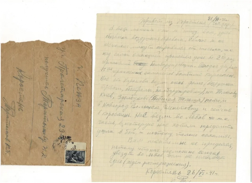 Итак, вот первое письмо, отправленное в совершенно крошечном конверте 90Х60 мм, и написанное карандашом. Оно не очень информативно. Но для родителей Кости и это была радость, да еще какая