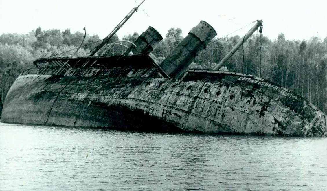 Полузатонувшая «Ангара», Иркутское водохранилище, 1985 г.
