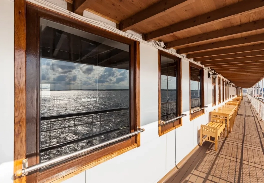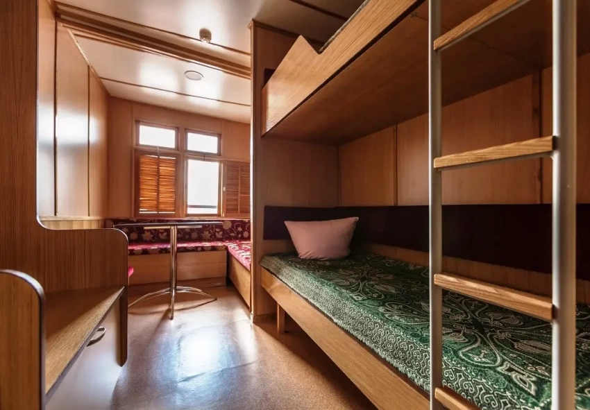 Пассажиры располагались в каютах 1, 2 и 3-го классов, причем на верхнюю палубу допускались пассажиры только 1 и 2 классов. Наиболее же многочисленный контингент — палубные пассажиры — коротали время, сидя на березовых дровах, складированных на нижней палубе. Их «удобства» в основном ограничивались двумя медными кубами (баками) с кипяченой водой, подогревавшейся паром. На корме, под навесом, располагались перевозимые крестьянами коровы, лошади, поросята.