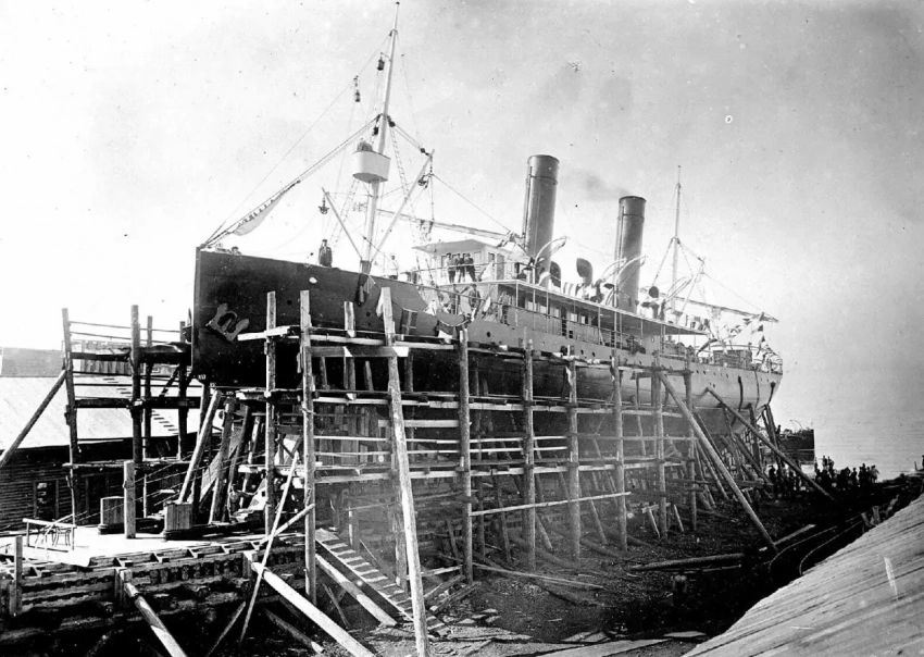 Местом сборки ледокола и постройки плавучего дока выбрали село Лиственничное, расположенное на западном берегу Байкала неподалеку от устья Ангары. Там возникла импровизированная судостроительная верфь со стапелями, мастерскими, подсобными и жилыми постройками для квалифицированных рабочих с петербургских заводов, командированных на верфь, и служащих, приехавших со всех концов России.