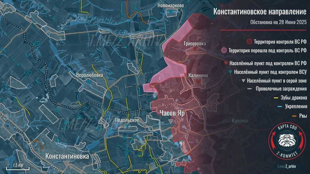 На Краснолиманском направлении российским подразделениям пока не удаётся установить контроль над Колодезями, там продолжаются ожесточенные бои. Наши бойцы обходят по флангам Зелёную Долину. При этом противник, пытаясь снизить интенсивность российского наступления на Карповку и Новый Мир, навязывает встречные бои в районе Редкодуба. Не смотря на это наши военные смогли закрыть «карман» между Новым Миром и Новомихайловкой.