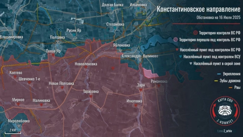 На Константиновском направлении продолжаются бои за Яблоновку и окрестности. Вооружённые силы Российской Федерации (ВС РФ) смогли расширить зону контроля у Петровки.