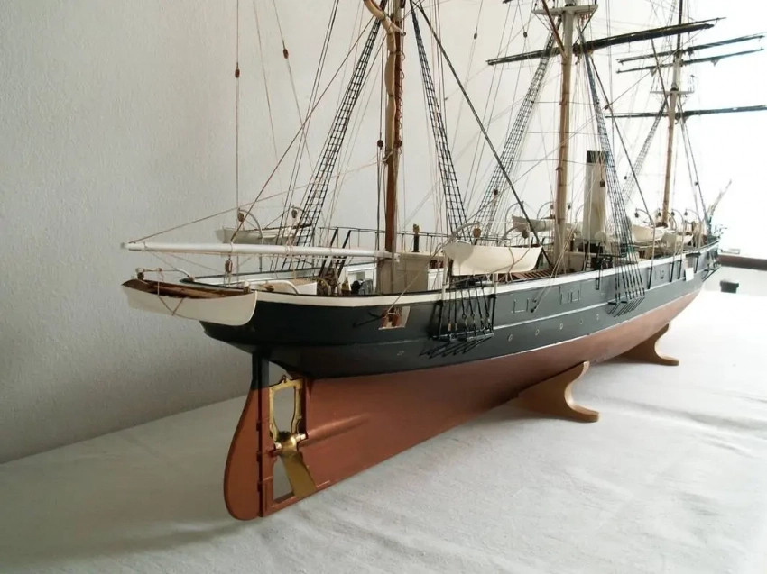 Модель клипера «Джигит», хорошо виден двухлопастной винт и колодец для его подъёма