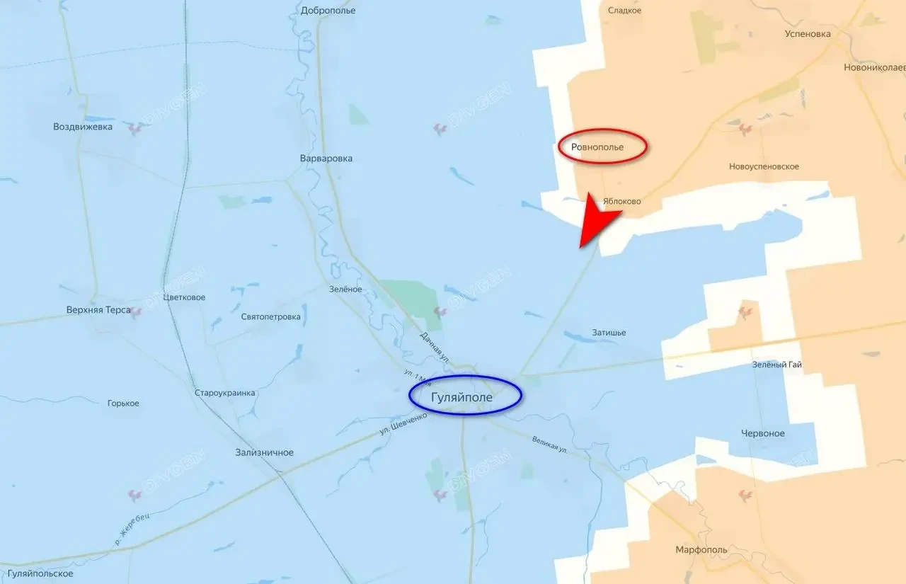 Освобождение Ровнополья и Яблоково открывает нашим войскам дорогу на Гуляйполе, до которого осталось не больше 6 километров, и это без учета серой зоны. Украинские ресурсы чуть ли не в один голос говорят, что город падет даже быстрей, чем Покровск. Но спешить не будем, посмотрим, что предпримет враг.