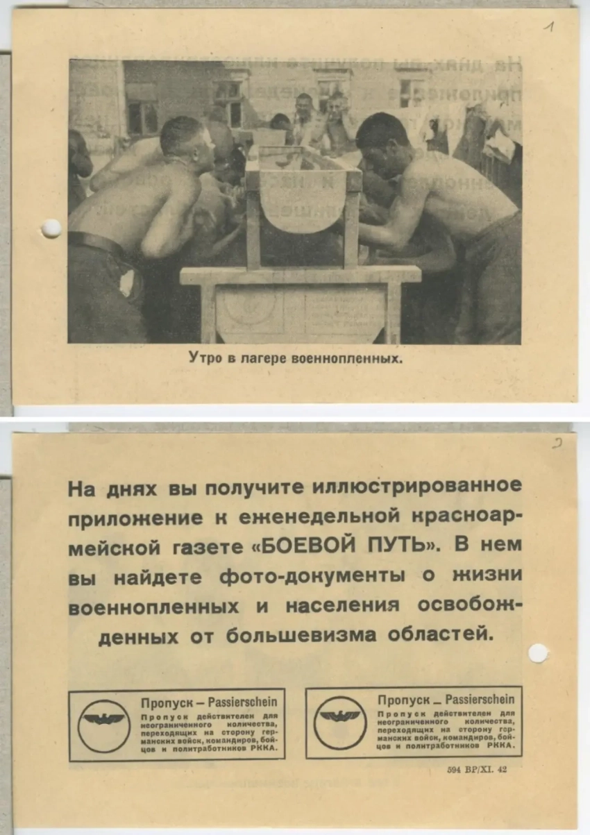 После таких заявлений напрашивалась необходимость дать со своей стороны некую «правдивую» информацию для советских солдат. Для этого периодически выпускались такие листовки, освещающие события в выгодном для немцев свете, или же вообще рассказывающие о событиях, которых не было.