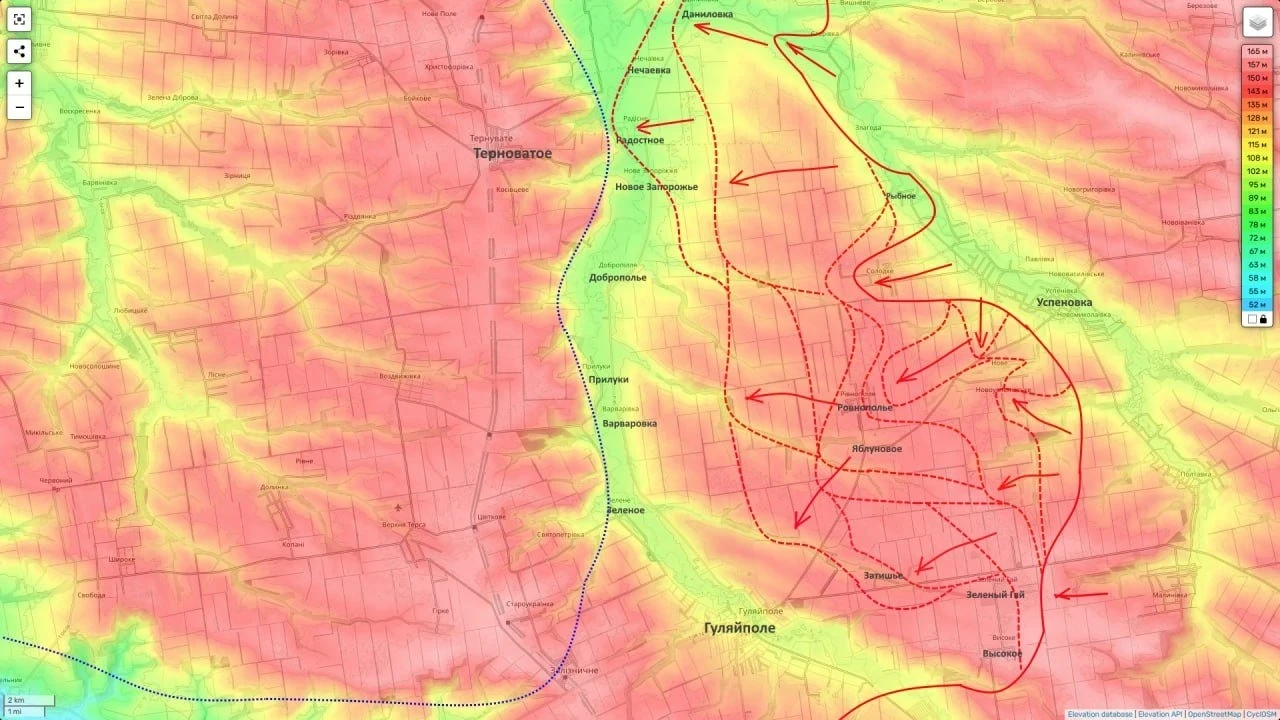 Село Затишье, которое расположено северо-восточнее и менее чем в 2 км от Гуляйполя наши подразделения 5А уже фактически взяли. Их северные соседи из 36А, после взятия под контроль Даниловки и Нечаевки, заканчивают добивать засевших в подвалах ВСУшников из Радостного. Начались бои за Новое Запорожье.