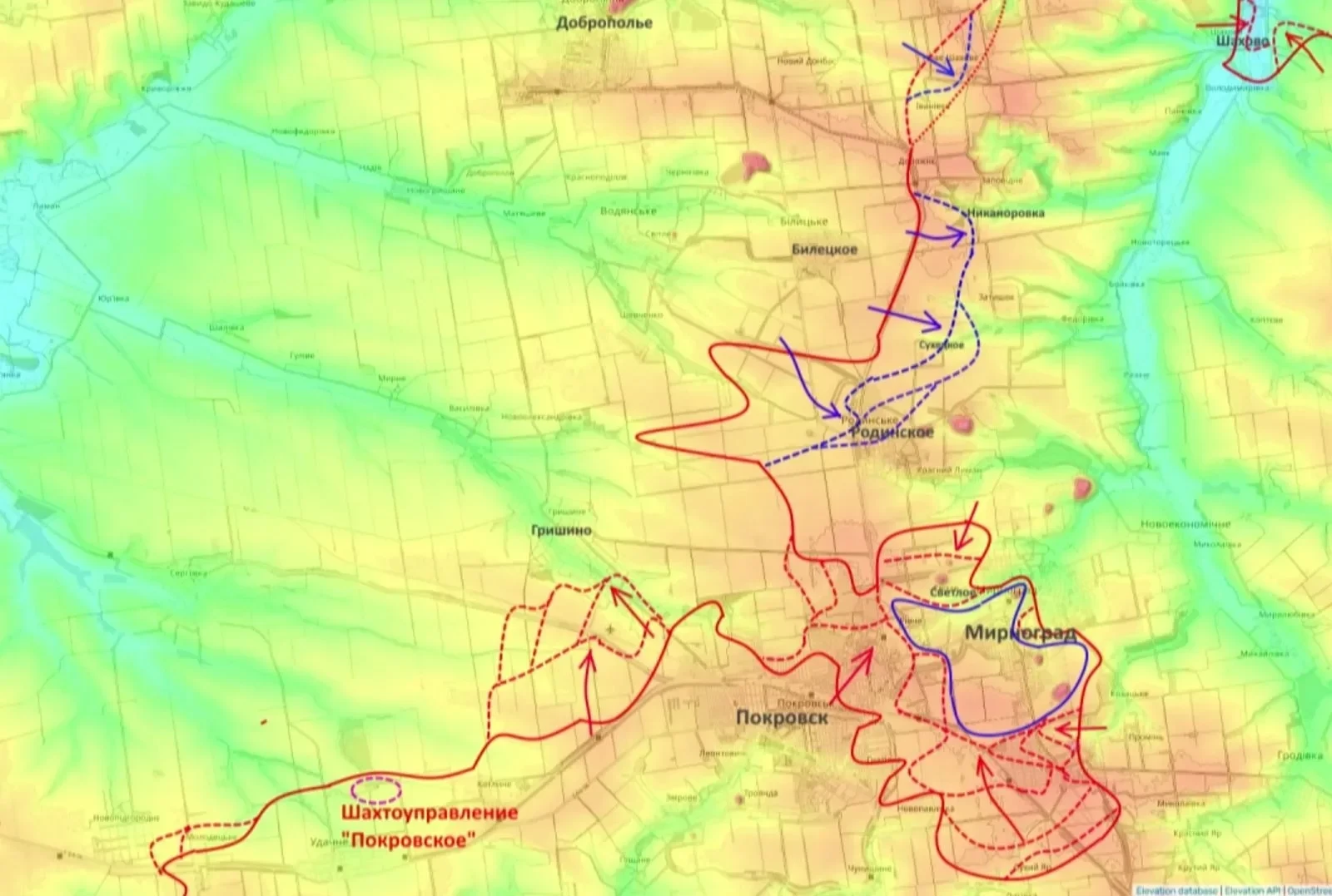 Российские войска, пробившись из Покровска, вышли на западные окраины Мирнограда, намереваясь рассечь оставшуюся в котле группировку ВСУ надвое.