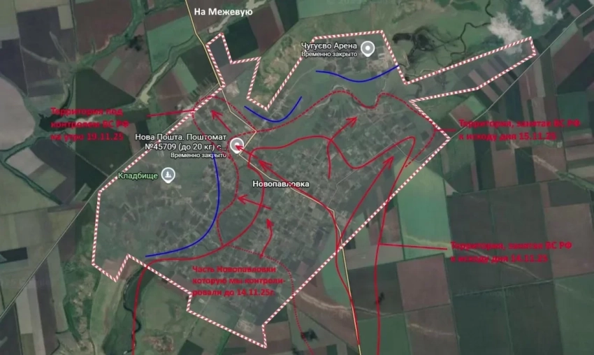 На Новопавловском направлении (район Великой Новоселки и западнее) противник находится в тяжелейшей ситуации. Идет зачистка Новопавловки. Это крупнейший населенный пункт на данном рубеже - дальше до самой Межевой (15–18 км) у ВСУ нет серьезных укреплений. Враг цепляется из последних сил, но наши части уже контролируют центр и продвигаются на север поселка.
