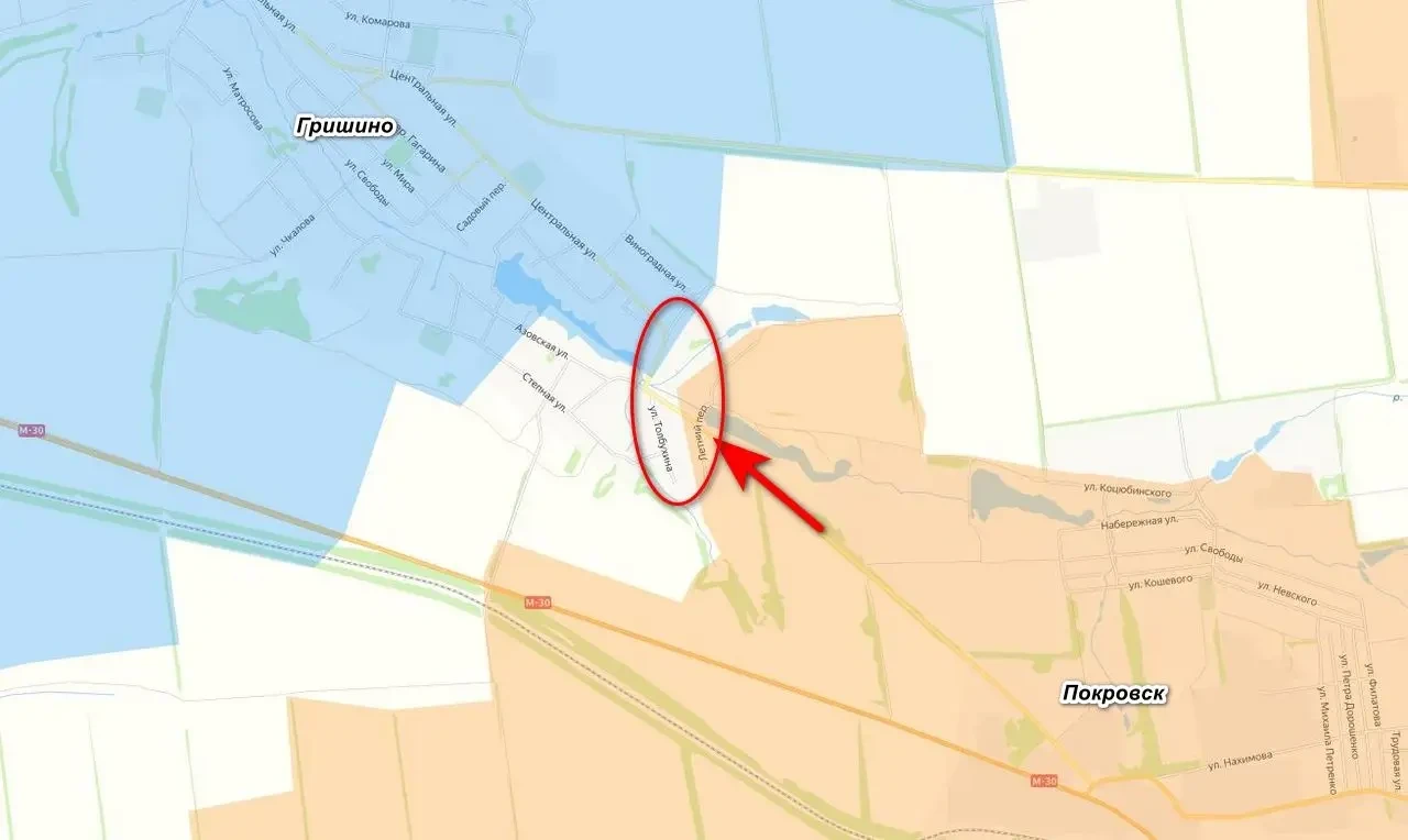 Штурмовые подразделения вошли в Гришино северо-западнее Покровска.