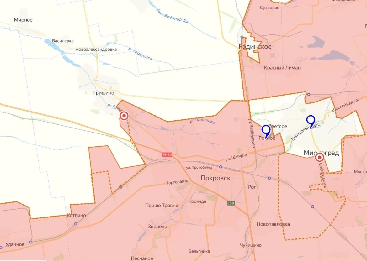 На Покровском направлении войска РФ отразили контратаку противника на северной окраине Покровска со стороны Шевченко. Сообщается, что ВС РФ улучшили свои позиции в районе Ровного под Мирноградом. На Добропольском направлении идут бои в районе Владимировки и Софиевки.