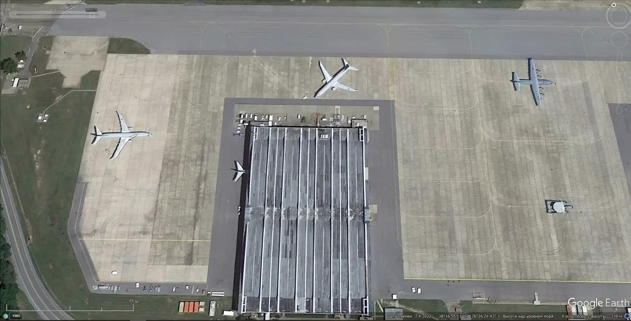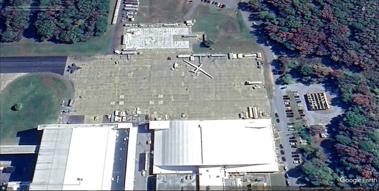 Спутниковый снимок Gооglе Eаrth: самолёт Lockheed EP-3E Aries II на авиабазе Патуксент-Ривер. Снимок сделан в июне 2022 года