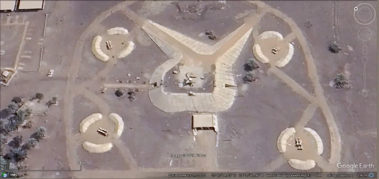 Спутниковый снимок Googlе Eаrth: позиция ЗРК С-125 в 5 км северо-восточней города Асьют. Снимок сделан в марте 2025 года