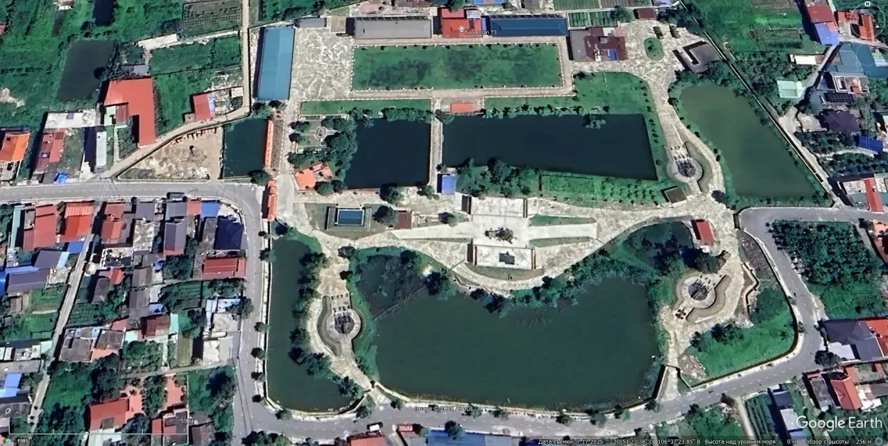 Спутниковый снимок Googlе Eаrth: позиция ЗРК С-125М1А в восточной части Хайфона. Эта позиция примечательна тем, что станция наведения и пусковые установки окружены прудами, ЗУР на ПУ нет. Снимок сделан в июле 2025 года
