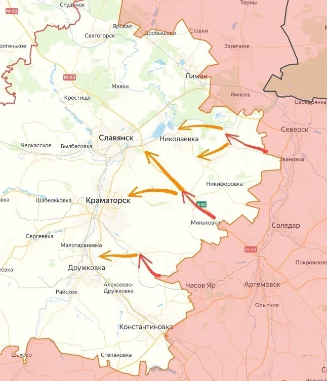 В Константиновке российские силы расширили зону контроля в районе ж/д вокзала, а также в западной части города, в районе техникума. На юге от Константиновки у наших есть успехи к востоку и югу от Берестков, на северо-востоке - отражены контратаки на Веролюбовку, идут бои южнее Фёдоровки и в Миньковке. Приходят данные, что Новомарково перешло под российский контроль.